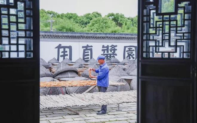 这种用鲜嫩小萝卜腌制的咸菜乃是甪直古镇的传统美食,脆甜可口、酱香诱人,一年四季都可食用。其制作工艺较顾禄、包天笑所记载更为繁复,需历经选料、压石、腌制、晾晒、甜酱密封、加香料伏缸等十余道工序。各道工序均由手工操作,环节严谨、一丝不苟,经十个月自然发酵方可成型。通常每百斤鲜萝卜仅能制成九公斤成品,故而当地俚语有“萝卜肉价钿”。