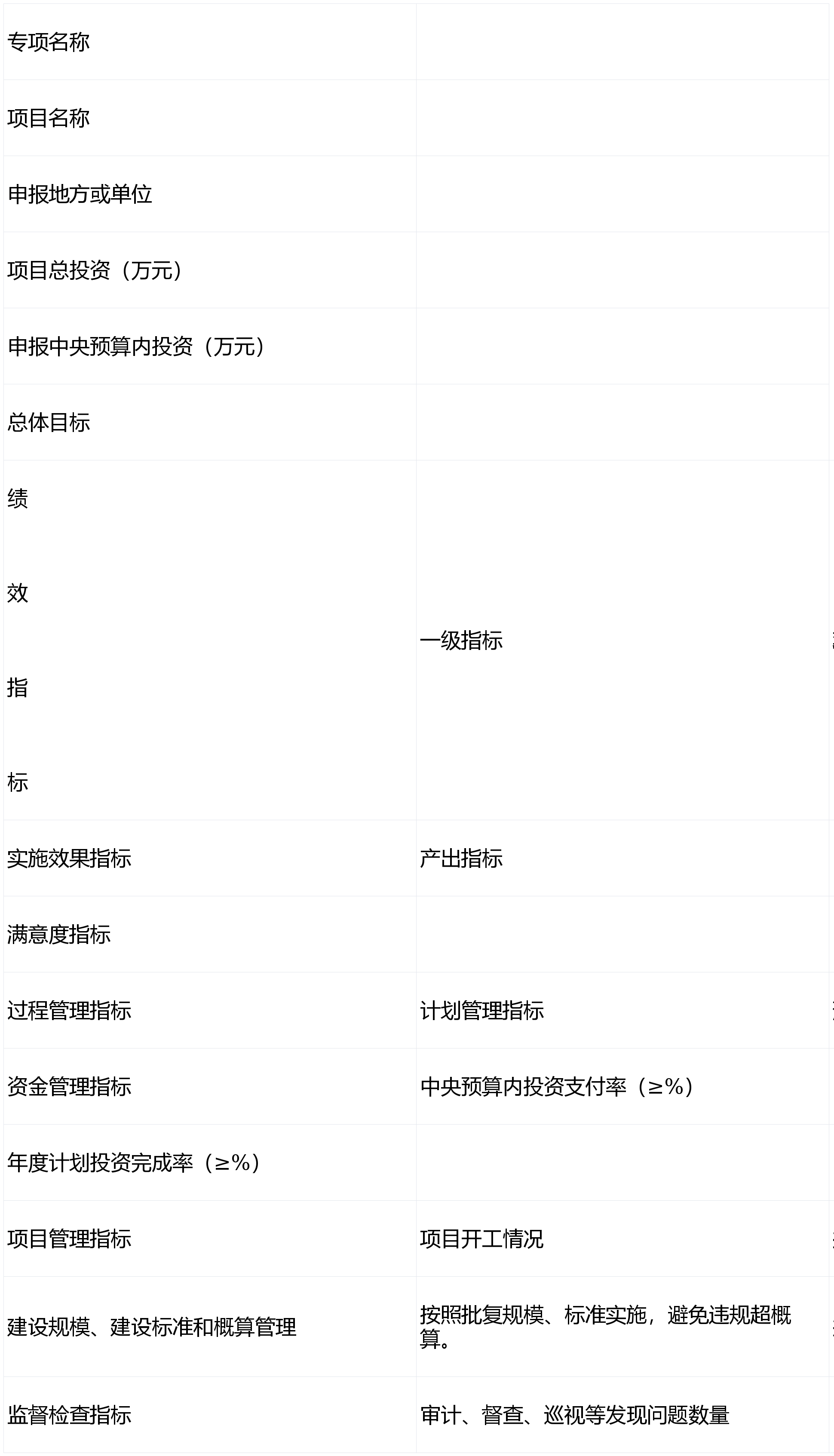 2.年度计划投资完成率、中央预算内投资支付率的指标下限值不得低于80%、65%。